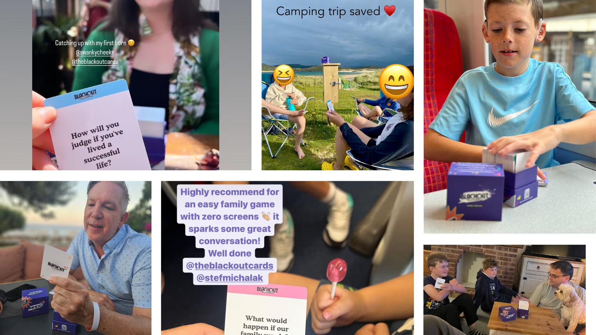 After years of seeing my 2 teenagers at mealtimes only it was great to spend 2 hours playing blackout cards with them. We laughed , cried and chatted together. We have all decided to spend more time together as we have missed out on do much without realising. Great invention for all the family -Mary Bennett-Knight